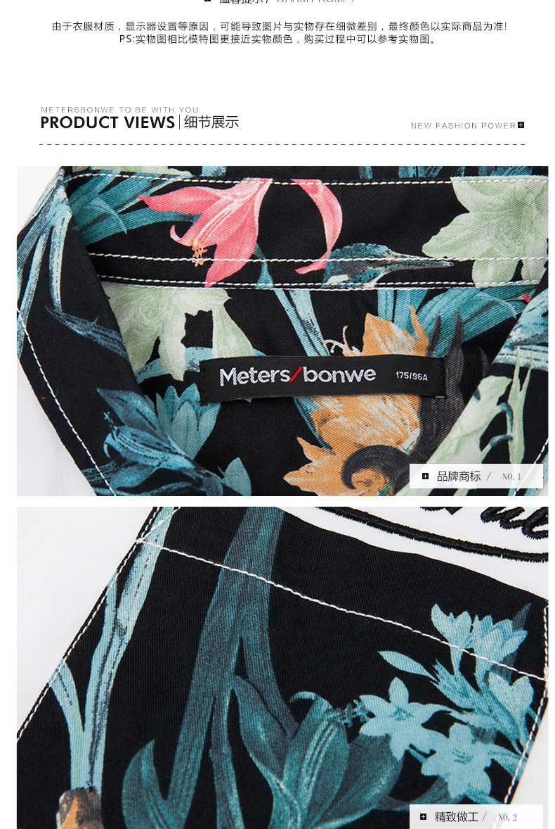 美特斯邦威男长袖衬衫2016春装新款男花卉拼接长袖衬衫722052